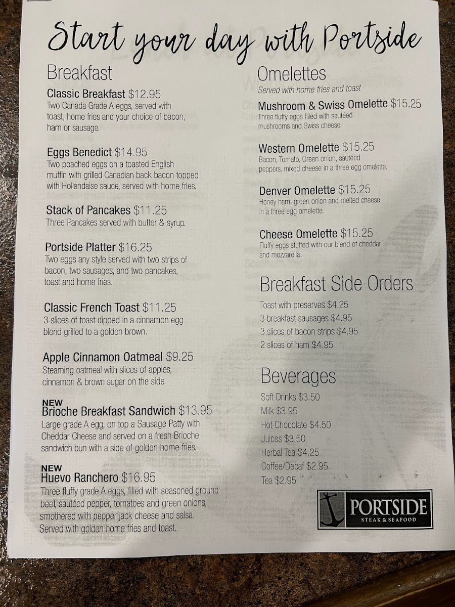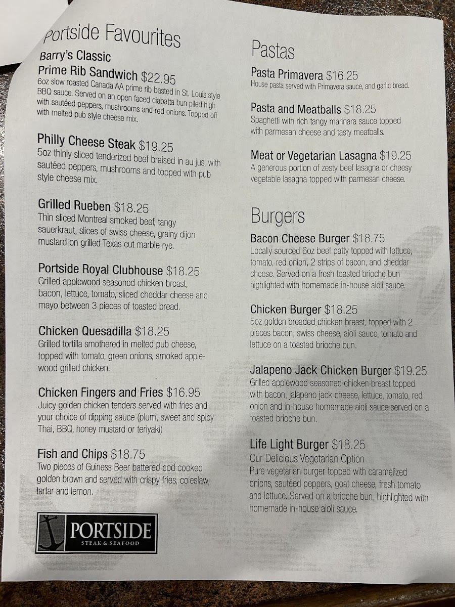 Overall, the Portside menu reflects a casual, dependable place to enjoy familiar flavors, with attentive service contributing to a pleasant and easygoing dining occasion.